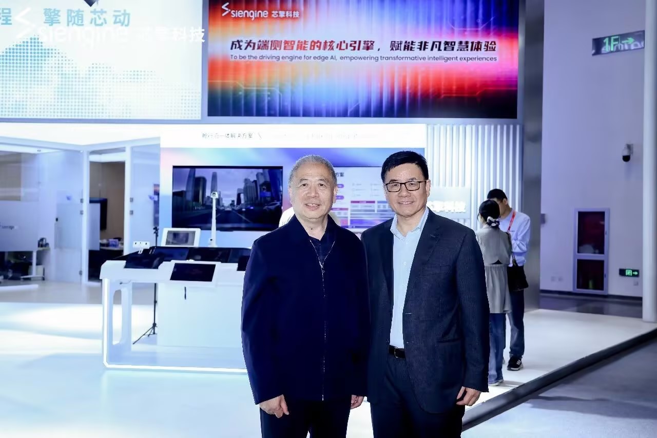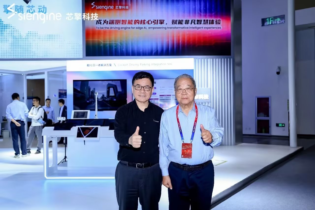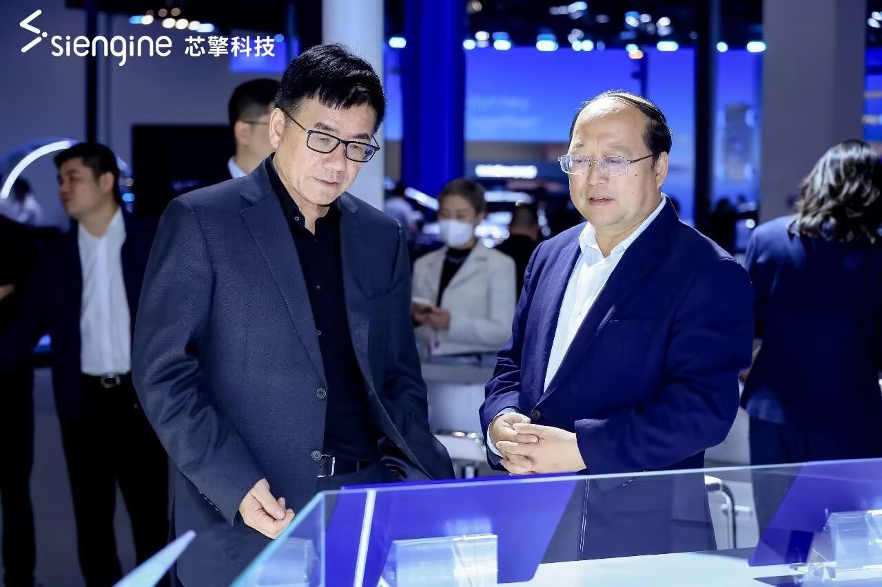 (中国汽车工程学会理事长张进华视察芯擎展位)
