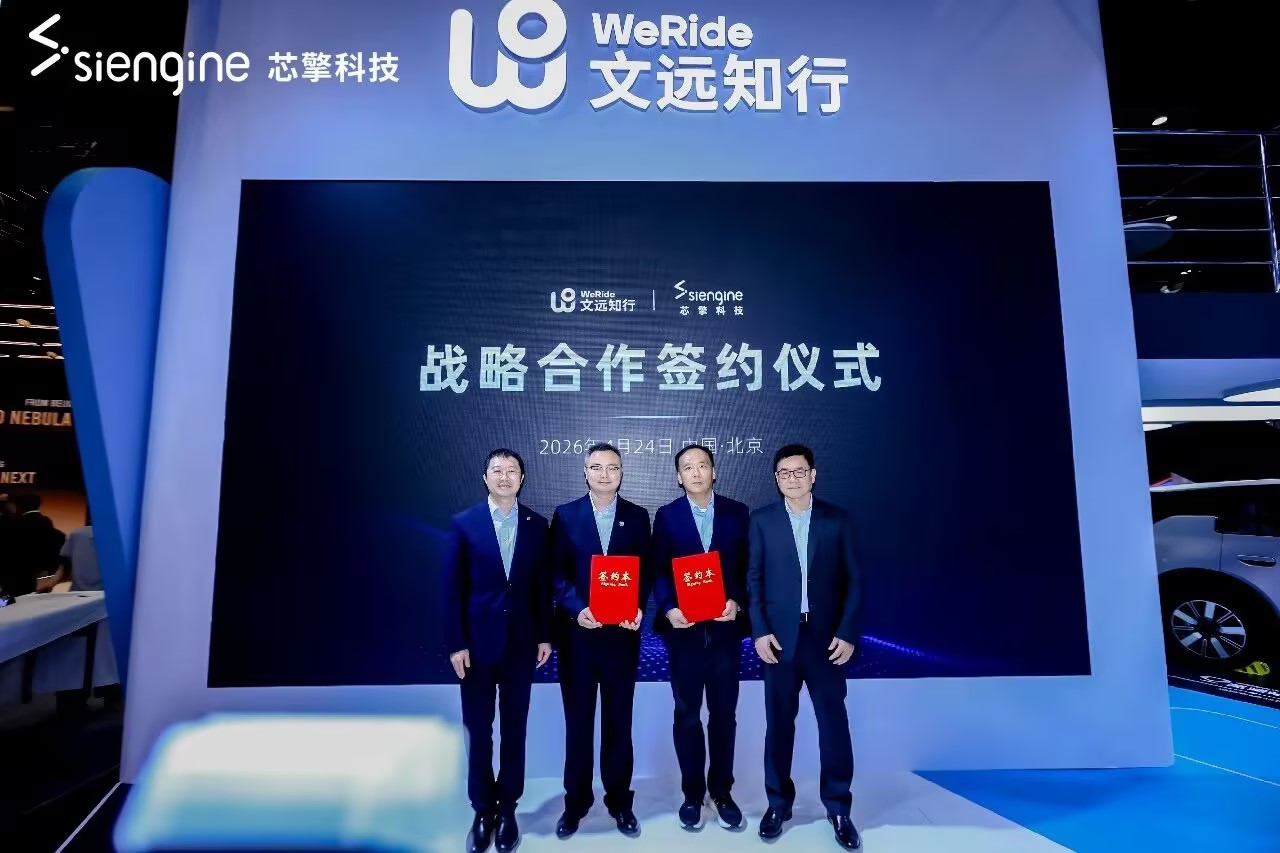 车展首日,芯擎科技与宇通集团、文远知行和首传微电子分别签署战略合作协议。文远知行是全球领先的自动驾驶科技公司。双方将依托各自在车规级芯片、自动驾驶技术领域的深厚积累,深度融合“芯片算力”与“算法应用”,加速高阶辅助驾驶技术的规模化落地与全球化拓展。